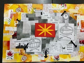 Year 8 English students this term focused on family stories, where students were invited to listen to the wisdom of a family elder and to craft, in their own words, their story. Students then became custodians of this story, drafting, writing, then performing it for their peers. They then considered who has the right to tell whose story and observed diverse and sometimes marginalised voices within a variety of texts including the picture book The Rabbits by John Marsden and Shaun Tan, which stimulated a variety of visual responses growing out of the powerful themes of this book.