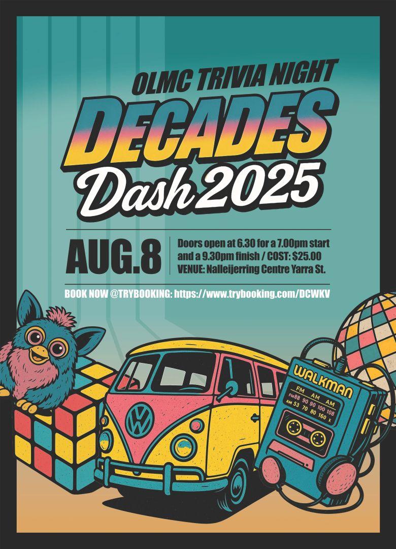 To book please go to trybooking.com and search OLMC or enter the link https://www.trybooking.com/DCWKV