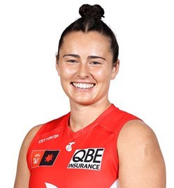 Whilst doing all this she has also made her very successful mark in the world of AFLW. She played in the VFLW for three seasons, representing the Darebin Falcons, before signing with Hawthorn in the AFLW in 2020. She moved to Sydney Swans in 2022 where she took on the role of inaugural co-captain, and has spent the last three seasons giving her all to the Swans.