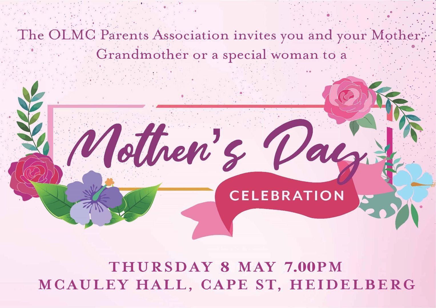 The OLMC Parents’ Association are very excited to be hosting a Mother's Day Celebration on Thursday 8 May 7.00 pm in the McAuley Hall, Cape St, Heidelberg and invite all students to come along with their Mother, Grandmother or a special person in their lives.